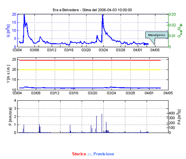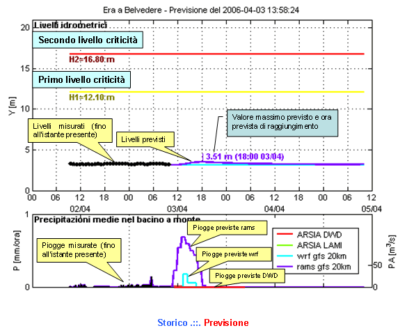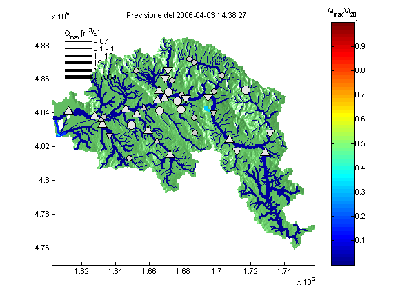 previsioni di portata e livello sulle sezioni fluviali.